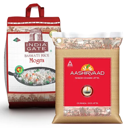 Aashirvaad Shudh Chakki Atta(5kg) & India Gate Basmati Rice Mogra(5kg) Combo
