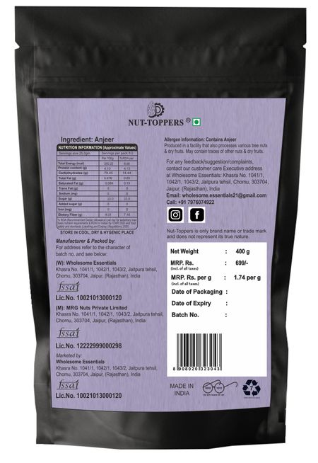 Nut Toppers Premium Dry Figs (Anjeer) 400g